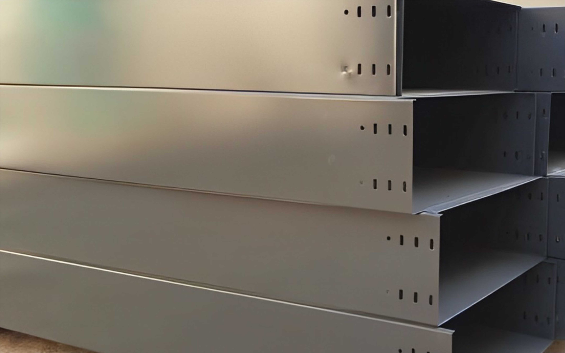 组合式桥架是一种较新型结构的桥架,适合与多种电缆敷设,结构简单、组合灵活,只需采用 100、150、200mm 三种基本型便可组成多种尺寸桥架体,而无需弯通,三通、四通等配件,亦可根据现场需求任意转向,变宽,分支,引上,引下,还可在桥体任意部位将线管引出而无需钻孔、焊接、是较理想的桥架类型。